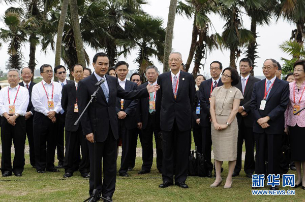 今年是两岸共同市场基金会第十次组团参会。十年来,博鳌论坛不仅为两岸经济界提供了一个交流合作的场所,近年来更成为两岸高层接触对话的重要平台。刚才,中共中央政治局常委、李克强副总理与吴敦义名誉团长及各位朋友进行了很好的会见和交谈。大家就如何巩固深化两岸关系,尤其是推进两岸互利合作深入交换了意见。
