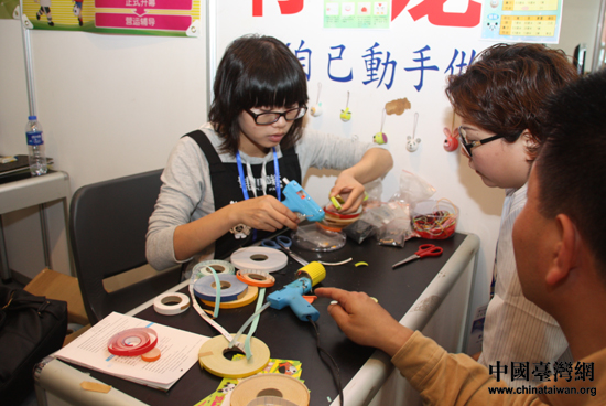 展商指导观展市民制作纸公仔,免费体验,做好带走。(中国台湾网 王思羽 摄)