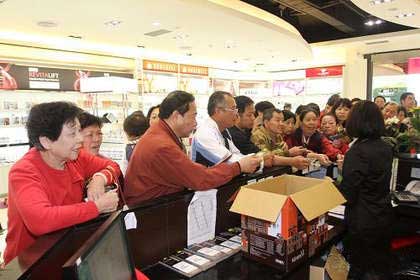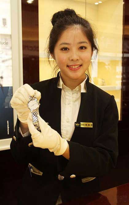 免税店内销售名贵精品的销售员吸睛。图片来自台媒