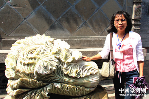 杨柳青石家大院是清代津门八大家之一的石元士的旧宅,这处晚清民居建筑群有“华北第一宅”之称。自踏入院门起,大家的目光就被充满了清末民初风格的建筑物和艺术装饰牢牢抓住。在院门处有一棵玉石白菜,经讲解员讲解,台湾民众了解了大陆“白菜”通“百财”的风俗,并纷纷与其合影留念。