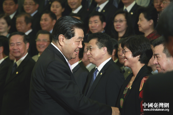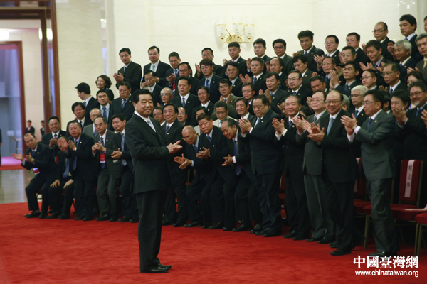 中共中央政治局常委、全国政协主席贾庆林今天下午在人民大会堂会见全国台企联第二届会员代表大会代表并发表重要讲话。(中国台湾网 王伟 摄)