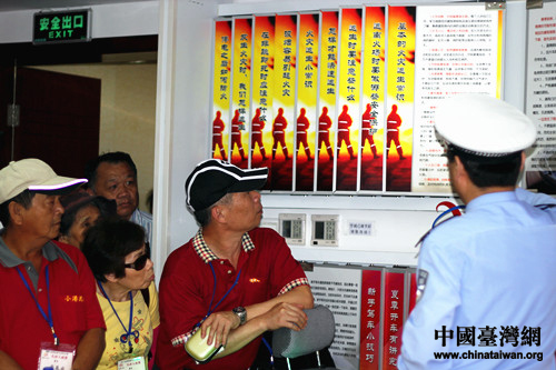 台胞听社区安保负责人讲解安全防护措施。(中国台湾网 刘承思 摄)