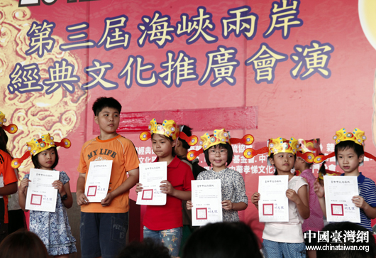 在“和谐中华·第三届海峡两岸经典文化推广会演”获奖的小状元(中国台湾网 邢同林 摄)