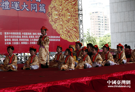 中国台湾网5月27日台中消息 5月,万木葱茏、百花竞艳,由济南市教育学会、台湾中华华夏文化交流协会、《两岸关系》杂志社、中国孔子基金会共同主办的“和谐中华 第三届海峡两岸经典文化推广会演”27日在台中市隆重开幕。(记者 刘海伟)