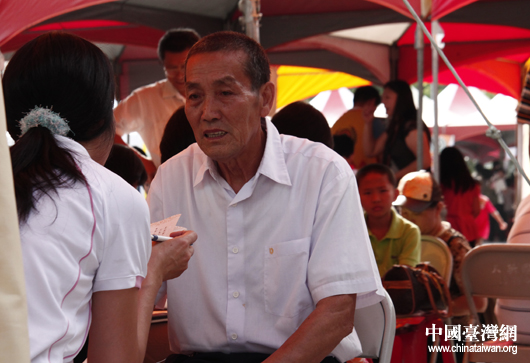 在经典文化考试中获得状元的老人(中国台湾网 邢同林 摄)
