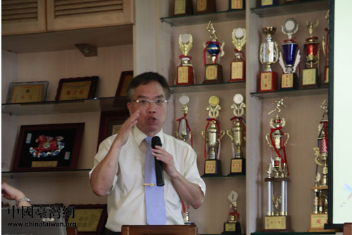 吉峰小学校长陈武仓向参访团介绍该校情况(中国台湾网 邢同林 摄)