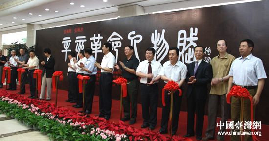 2012年5月27日,由著名书法家张飙先生撰、书的《辛亥革命人物赋》书法展在全国政协礼堂开幕。图为剪裁仪式。(中国台湾网 杨永青 摄)