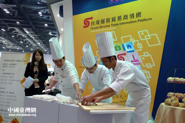获得国际大奖的台湾糕饼师傅现场进行西点制作(中国台湾网 李徽 摄)