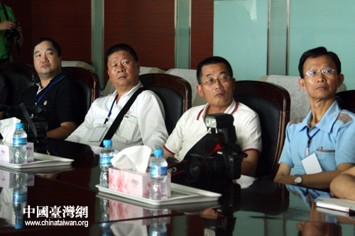 台湾媒体记者观看酒泉新能源装备制造产业园区概括介绍的短片。(中国台湾网 郜利敏 摄)