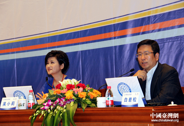 中央电视台主持人白岩松和凤凰卫视主持人吴小莉一起现身厦门大学,共同主持了海峡青年论坛主旨论坛。(中国台湾网 芮益芳 摄)