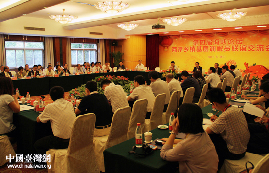 中国台湾网6月17日消息 第四届海峡论坛·两岸乡镇基层调解员联谊交流会今日在厦门举行。来自海峡两岸的基层调解员以“ 交流两岸调解,共创和谐家园”为主题,就共同关心的两岸调解组织架构、调解范围、调解方法和调解作用等议题进行深入研讨,深入挖掘两岸调解工作的特色和亮点,互相学习宝贵经验,进一步凝聚共识。此次交流会邀请到台湾调解同仁60余人,国台办法规局副局长巢小良、司法部基层工作指导司副司长王学泽出席会议并讲话。