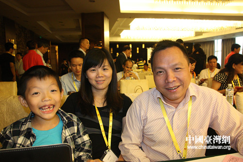 来自湖南长沙的邓先生和来自台北的太太以及8岁的儿子在论坛现场。(中国台湾网 栗琰 摄)