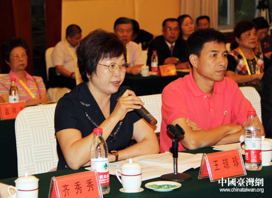 大陆基层调解员在交流会上发言。(中国台湾网 王思羽 摄)