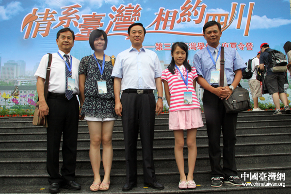 刘奇葆与前来参加第三届“台湾学生天府夏令营”活动的一家合影留念。(中国台湾网 王伟 摄)