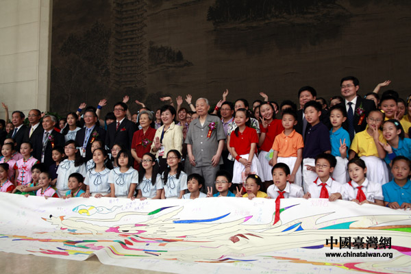 中国台湾网7月6日北京消息 七月的北京,充满阳光与活力。61名台湾“小天使”与百余位大陆儿童5日相聚在北大百年纪念讲堂,共绘巨龙,同台歌唱,拉开了“两岸和平小天使20周年”纪念活动的帷幕。