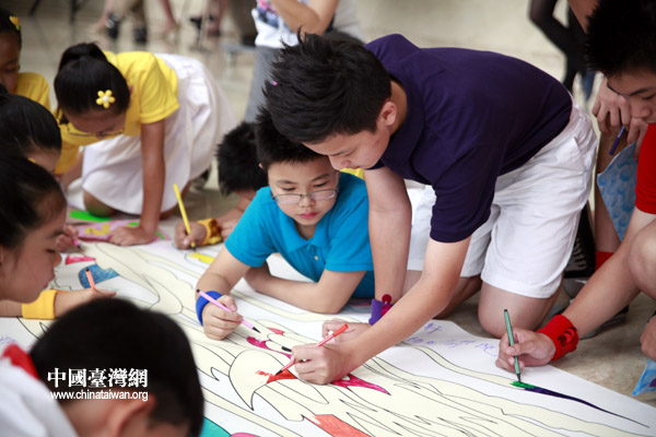 两岸“小天使”携手绘制长卷(中国台湾网 李徽 摄)