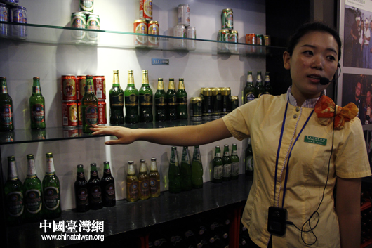 “情系齐鲁——两岸文化联谊行”参访嘉宾参观青岛啤酒博物馆,讲解员介绍青啤种类。(中国台湾网 芮益芳 摄)