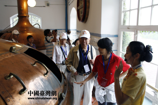 “情系齐鲁——两岸文化联谊行”参访嘉宾参观青岛啤酒博物馆,观看历史上的啤酒酿造工具。(中国台湾网 芮益芳 摄)