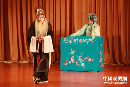 北京昆曲研习社李楯(左)在《牡丹亭·游园惊梦》中扮演梦神。(中国台湾网 孟雅诗 摄)