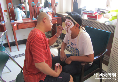 京剧院的师傅为台湾学生花京剧脸谱。(北京通讯员 孙淼 摄)