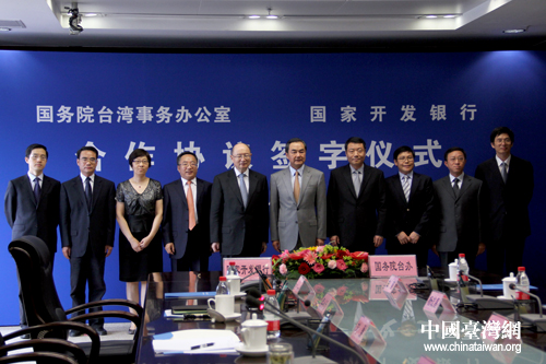 国台办与国家开发银行18日在北京再度签署合作协议,将在支持大陆台资企业发展和陆资赴台等领域通力合作,促进两岸经济共同发展。图为双方完成签字仪式后合影。(中国台湾网 普燕 摄)