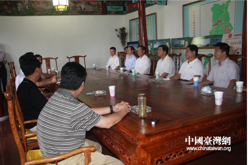 北京市台办副主任王兰栋、北京台资企业协会理事长林清发等一行人员听取房山区河北镇有关负责人介绍受灾情况。(中国台湾网 高斯斯 摄 )
