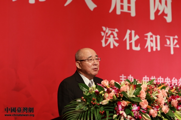 中国国民党荣誉主席吴伯雄在第八届两岸经贸文化论坛开幕式上致辞(中国台湾网 于斯文 摄)