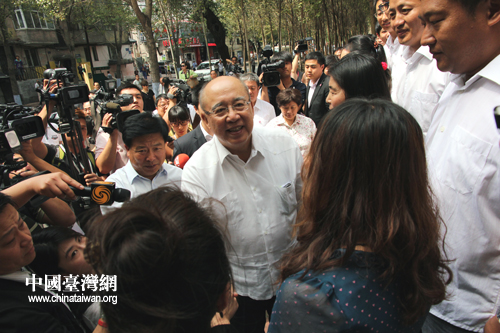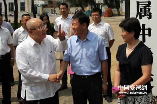 7月28日,国民党荣誉主席吴伯雄来到哈尔滨,与哈工大附中校长会面。(中国台湾网 马迪 摄)