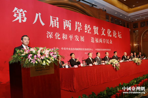 中国台湾网7月28日哈尔滨消息 以“深化和平发展,造福两岸民众”为主题的第八届两岸经贸文化论坛28日9时在哈尔滨开幕。中共中央台办主任王毅、中国国民党副主席林丰正共同主持开幕式。