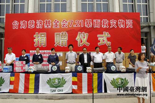 台湾慈济基金会7.21暴雨救灾物资捐赠仪式。(中国台湾网 马迪 摄)