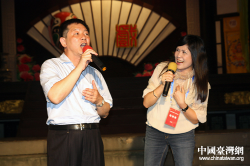 中国台湾网8月20日成都消息 晚风习习,秋虫低吟……八月的成都气候凉爽宜人。19日傍晚,前来成都出席第三届两岸县市“双百论坛”的100余位台湾议员和大陆有关省市的部分地市人大、政协代表,在成都著名旅游景区武侯祠结义楼举办了一场别开生面的联欢纳凉晚会,两岸嘉宾纷纷登台献艺。中共中央台办副主任叶克冬参加晚会。(中国台湾网记者 王怡然)