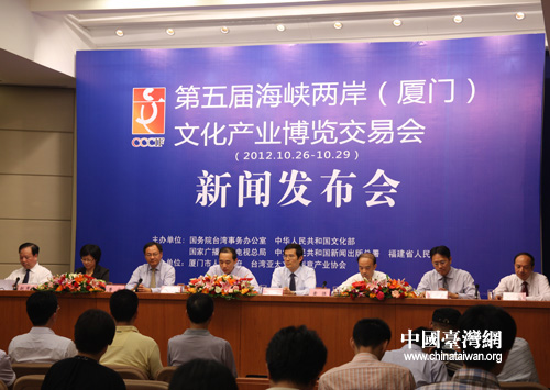 中国台湾网8月23日北京消息 今天下午,记者从第五届海峡两岸(厦门)文化产业博览交易会(简称“海峡两岸文博会”)新闻发布会上获悉:第五届海峡两岸文博会将于10月26日至29日在福建省厦门市国际会展中心举行,第五届厦门国际动漫节和第八届海峡两岸民间艺术节也将同期举办,与文博会形成“一会两节”的新格局。