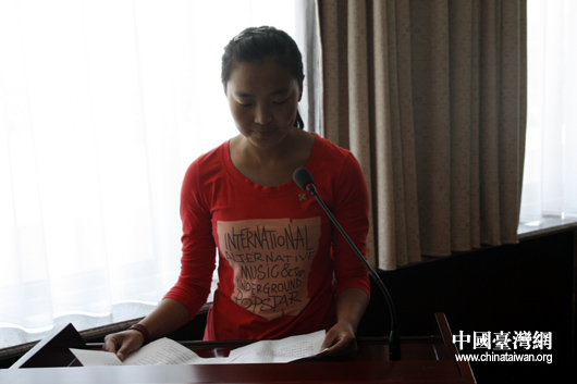 苏日亚来自内蒙古克什克腾旗巴彦查干苏木恩格尔宝力格嘎查,她在发言中代表获奖学生家庭向顶新基金会表示感谢(中国台湾网 芜同 摄)