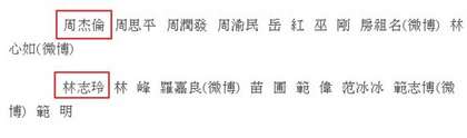 委员会列出的演员名单中出现了周杰伦、林志玲等台湾明星。图片来源台湾媒体