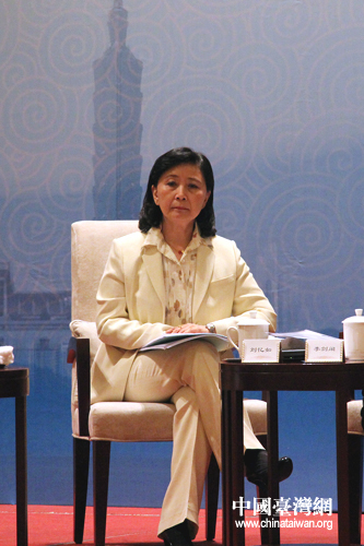 台湾大学财务金融系教授刘忆如在今日举行的2012海峡两岸企业家紫金山峰会两岸双向投资专题论坛上做主题发言。(中国台湾网 李徽 摄)