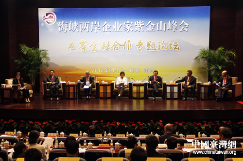 19日下午,“2012海峡两岸企业家紫金山峰会”两岸金融合作专题论坛在南京举行,两岸金融界学者精英就两岸金融合作的前景和亟待解决的难题展开讨论。(中国台湾网 于斯文 摄)