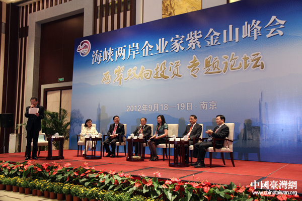 中国台湾网9月19日南京消息 海峡两岸企业家紫金山峰会19日在南京开幕,下午在紫金山庄举办了两岸双向投资论题论坛。两岸政商人士分别围绕“优化两岸双向投资环境”和“善用两岸产业资源、提升企业竞争力”两大主题开展了热烈讨论。