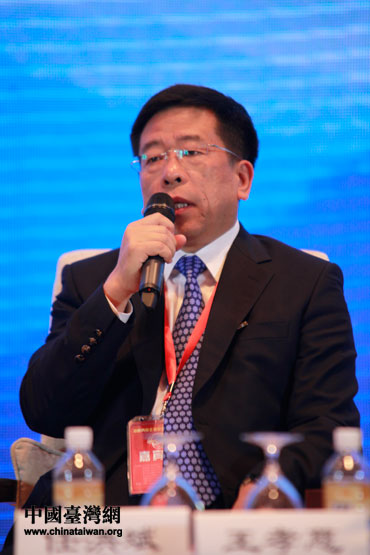 在两岸企业创新与人才合作专题论坛上,中国机械工业集团有限公司董事长任洪斌发表谈话。(中国台湾网 王伟 摄)