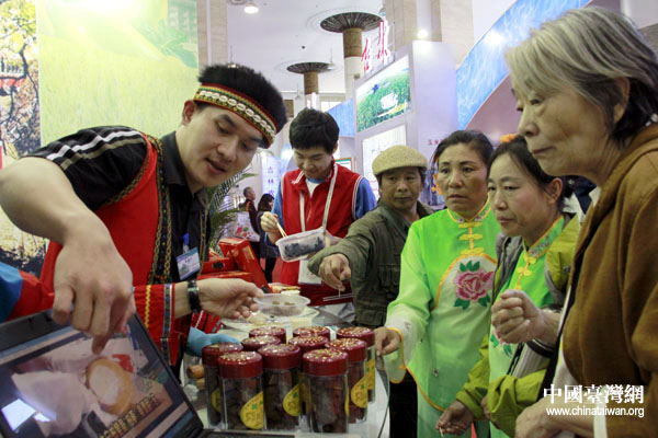 在台湾精品馆,记者看到,台湾展区工作人员均身着台湾少数民族的盛装亮像,将台湾少数民族文化内涵融入展会,成为本届展会上一道靓丽风景。来自台湾的销售代表徐月珠女士介绍说,此次展销的主要是产于嘉义阿里山地区的大米、枣、高山茶、水果及柚子参、凤梨酥、高山茶面膜、桧木制品等农特产品,展销两天来,受到消费者的热情关注和欢迎。