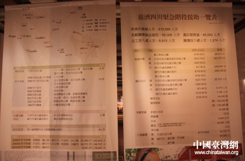 慈济四川紧急阶段援助一览表(中国台湾网 王文英 摄)