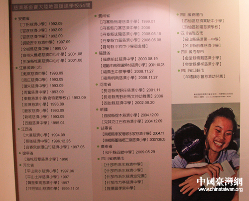 慈济援建大陆的54学校列表(中国台湾网 王文英 摄)