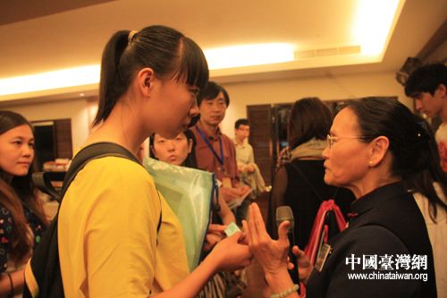 慈济基金会方金香为大陆青年大学生解释静思语的含义副本(中国台湾网 王文英 摄)