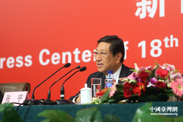 中国台湾网11月10日北京消息  今天下午3时,十八大新闻中心在梅地亚中心二楼多功能厅举办第二场记者招待会,邀请国家发展和改革委员会主任、党组书记张平介绍中国经济和社会发展情况,并回答记者提问。