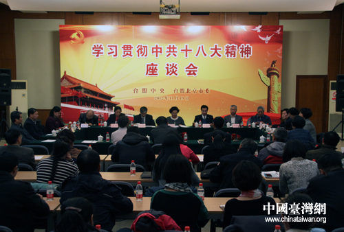 台盟中央、台盟北京市委11月19日下午在京联合举办学习贯彻中共十八大精神座谈会。(中国台湾网 王怡然 摄)