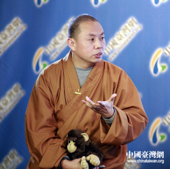 中国台湾网12月5日消息 以一段在峨眉山谈人生却遭猴子骚扰的视频在网络上疯传,带着浓重河北沧州口音的 “生命体”因此而走红网络的延参法师日前携新书《幸福想你了》作客中国台湾网,与两岸网友分享自己的佛学理念,传播幸福定义。