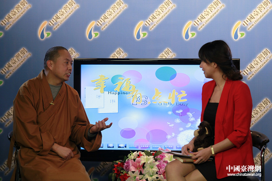 延参法师携新书《幸福想你了》作客中国台湾网,与两岸网友畅谈幸福与人生。(中国台湾网 王伟 摄)