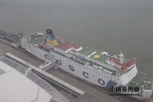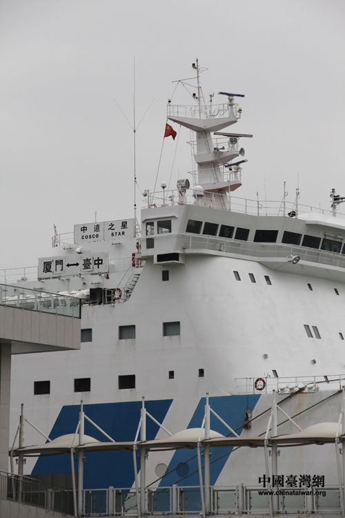 停泊在厦门港的直航台湾的“中远之星”大型客滚轮。(中国台湾网 扶海涛 摄)