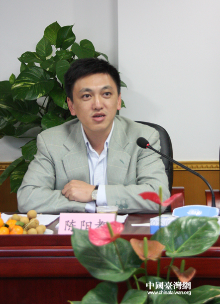 厦门市港口管理局政策法规处处长陈阳都向记者介绍厦门市建设东南国际航运中心的相关情况。(中国台湾网 扶海涛 摄)