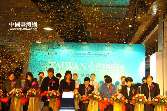 第七届北京文博会“台湾文创精品馆”20日正式开馆展出,图为开幕典礼剪彩现场。(中国台湾网 房琳琳 摄)