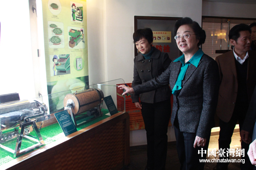 林文漪等参观天福茶文化馆内的茶叶生产加工模型。(中国台湾网 王怡然 摄)